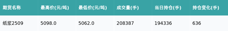 南财智讯7月7日电十倍配资开户,南财金融终端盘后期货数据显示,上海期货交易所的纸浆主力合约收跌0.12%,收盘报5074.0元/吨十倍配资开户,日内资金流入702.28万元。其他相关指标见下表: